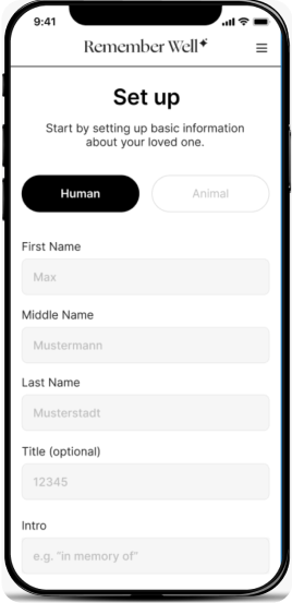 Personalize and set up the memorial profile